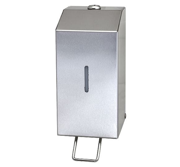 Metalowy dozownik do mydła o pojemności 0,85 l odpowiedni do toalet publicznych o średnim i dużym natężeniu ruchu. Solidna konstrukcja dozownika ze stali szlachetnej o matowym wykończeniu prezentuje się estetycznie w obiektach o różnym wykończeniu. Ergonomiczny przycisk zapewnia wygodę dozowania, a zamek z metalowym kluczykiem ogranicza dostęp do wnętrza dozownika osobom niepowołanym.