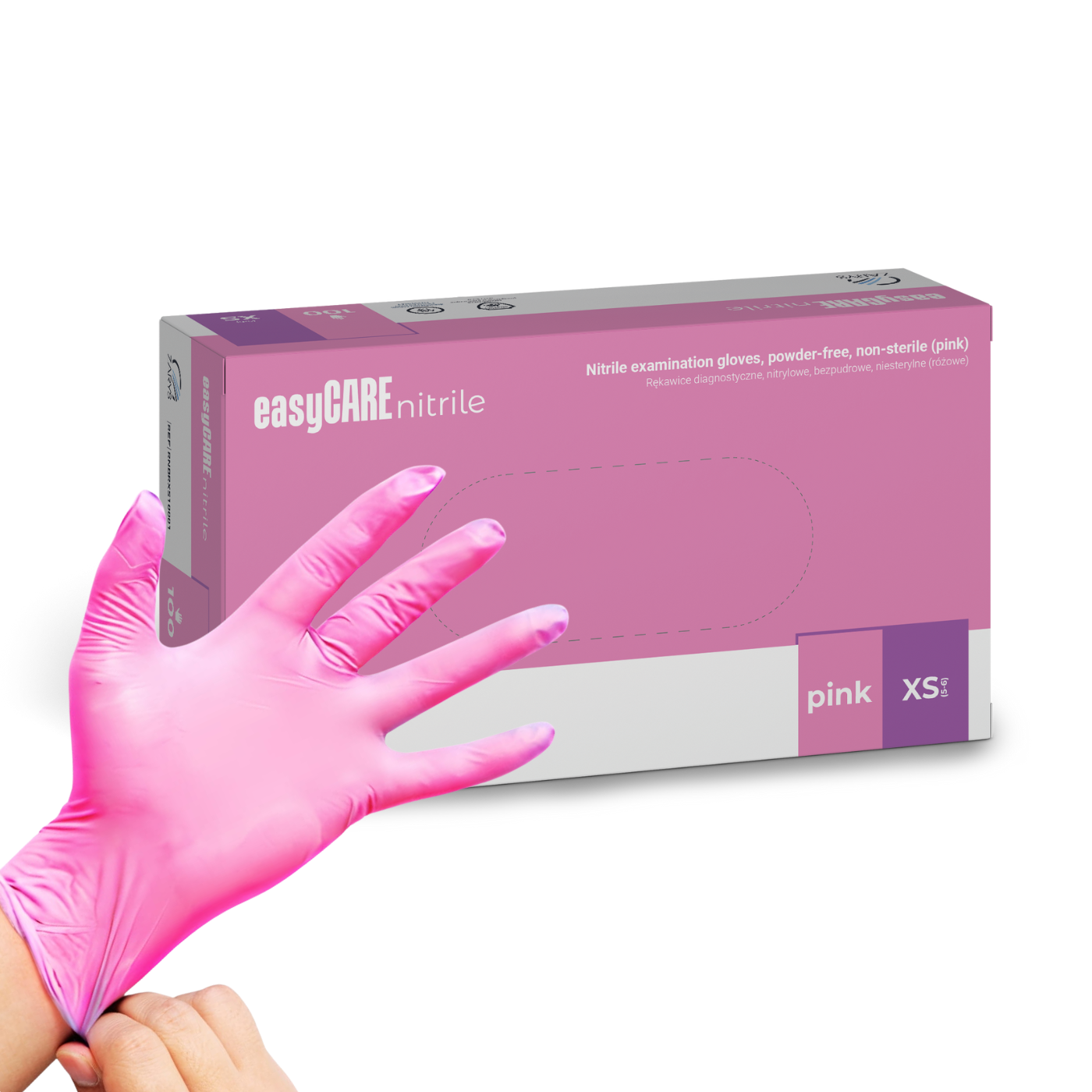 Rękawiczki easyCare nitrylowe, różowe, bezpudrowe XS a100