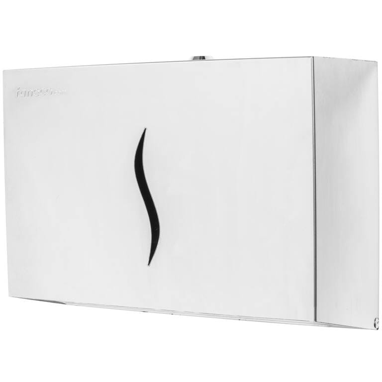 Podajnik ręczników ZZ DUO to naścienny dozownik, wykonany ze stali nierdzewnej polerowanej. Jest niezwykle solidnym modelem o dużej pojemności, dzięki czemu świetnie zastępuje suszarki do rąk w toaletach publicznych z dużym natężeniem ruchu. Polerowana obudowa dodaje podajnikowi DUO elegancji, a wizjer w kształcie litery „S”, znajdujący się na jej środku, funkcjonalności. Dzięki niemu sprawdzanie poziomu ręczników w podajniku jest proste i niekłopotliwe. Wygodne jest również konserwowanie i czyszczenie pojemnika. Dozownik ręczników DUO to bardzo funkcjonalne urządzenie, które z powodzeniem zaspokoi potrzeby użytkowników.