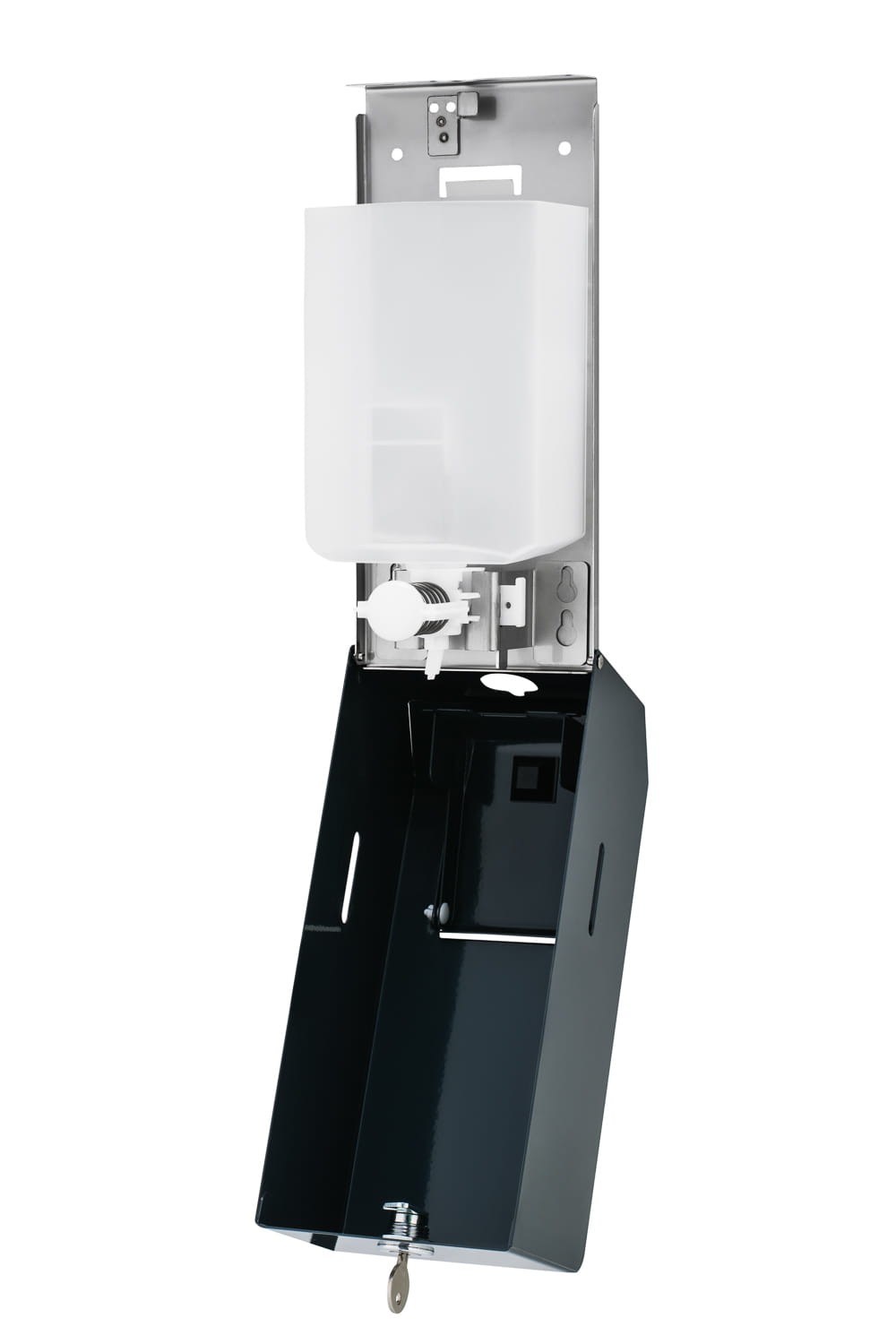 Wymiary dozownika: Wysokość 251 mm, szerokość 108 mm, głębokość 91 mm